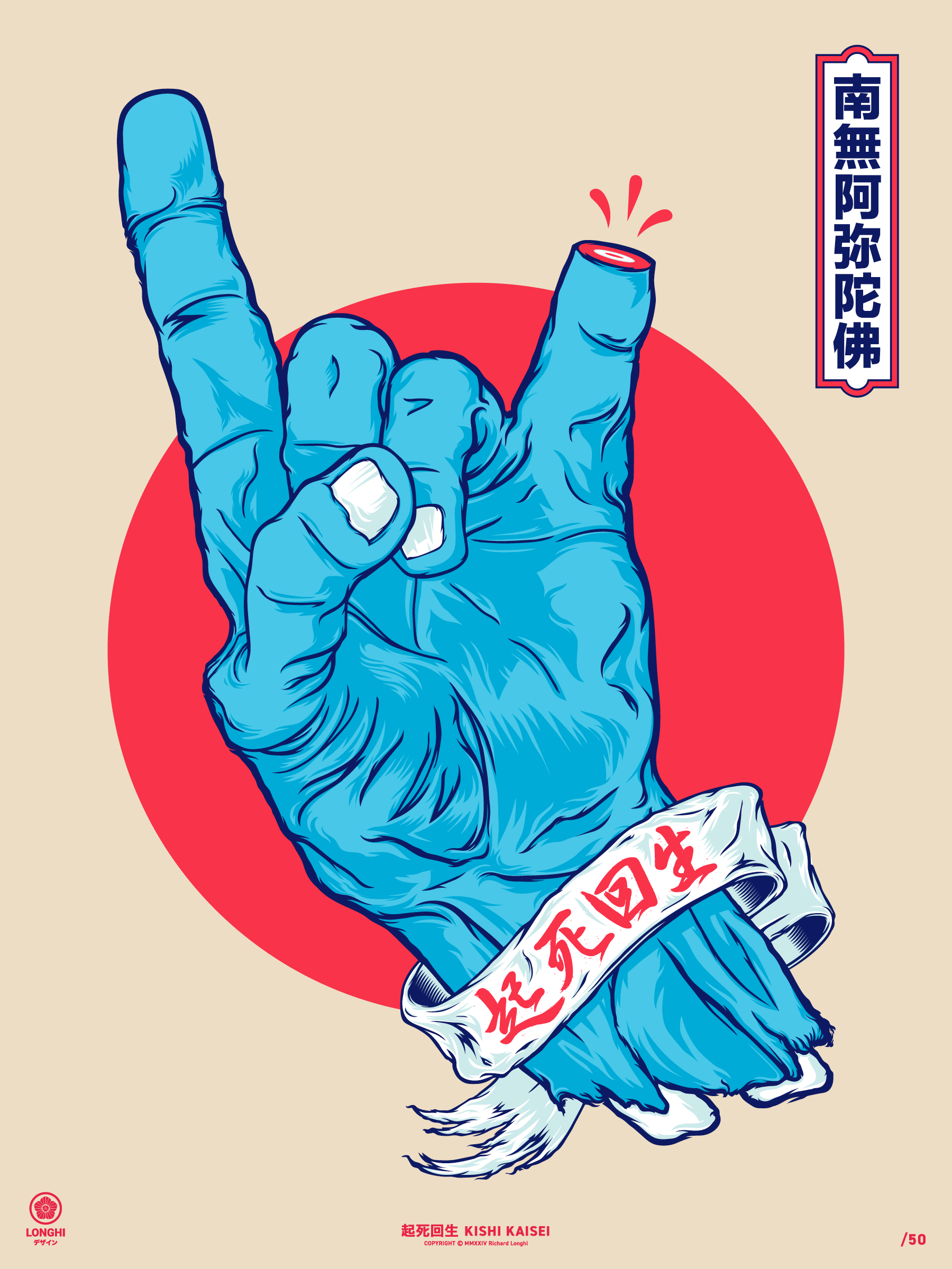 Kishi Kaisei literally translates to "Wake from death and return to life". Meaning "To come out of a desperate situation and make a complete return in one sudden burst". The removal of the pinky is a nod to Yubitsume. A Japanese ritual usually practiced by the Yakuza to show sincere apology and to atone for offenses to another, by means of amputating portions of one's own little finger.