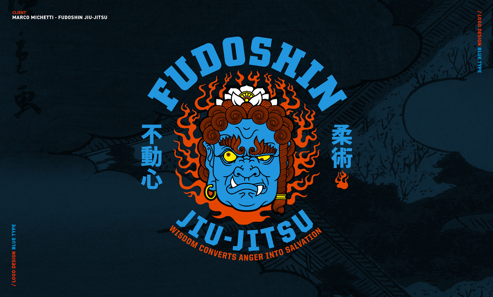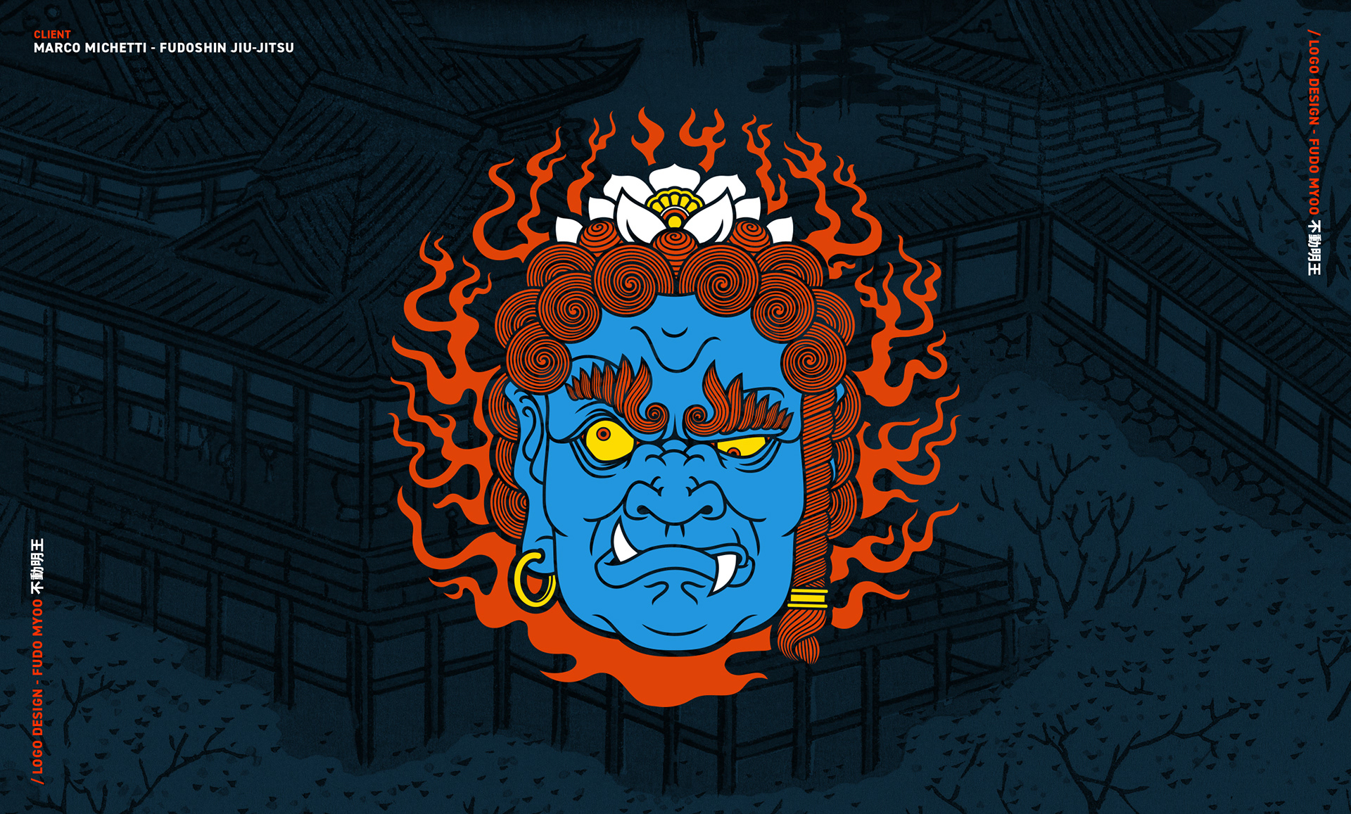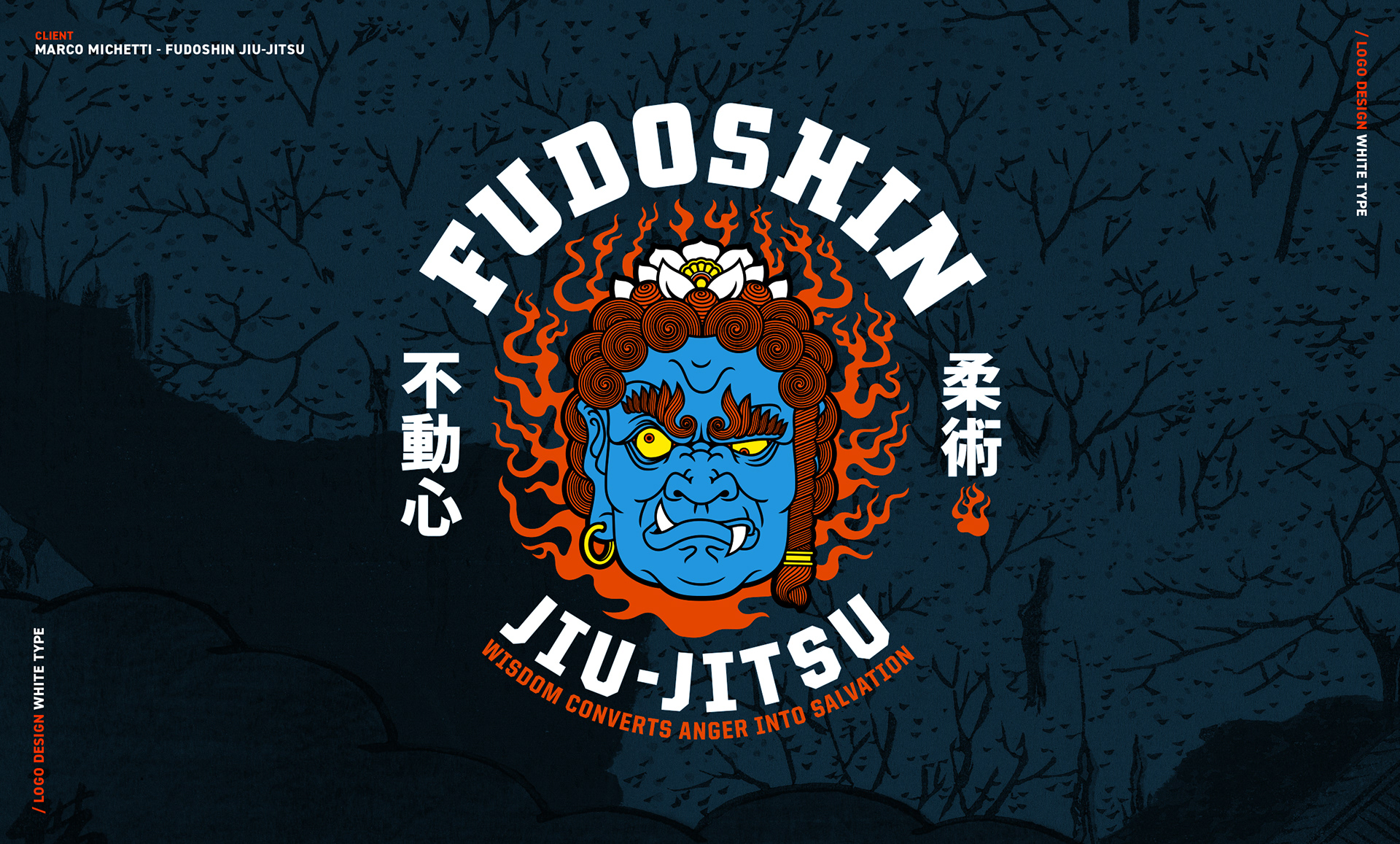 I created this Fudō Myō-ō 不動明王 inspired logo design for the incredibly talented Marco Michetti, owner of Fudoshin Jiu-Jitsu in Roma, Italia.