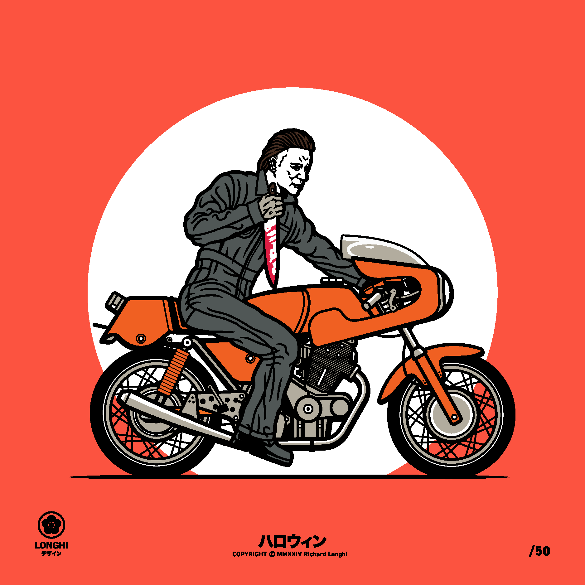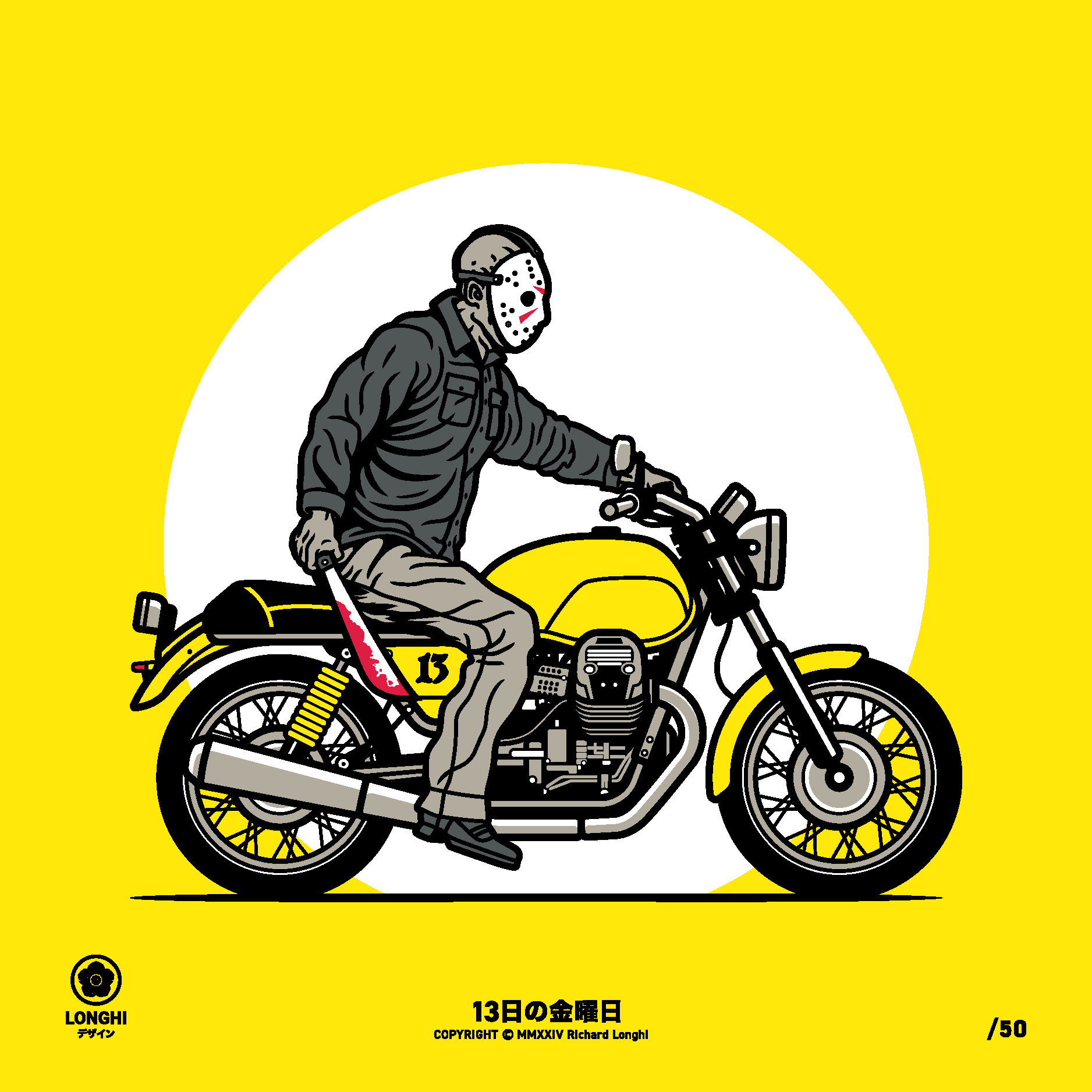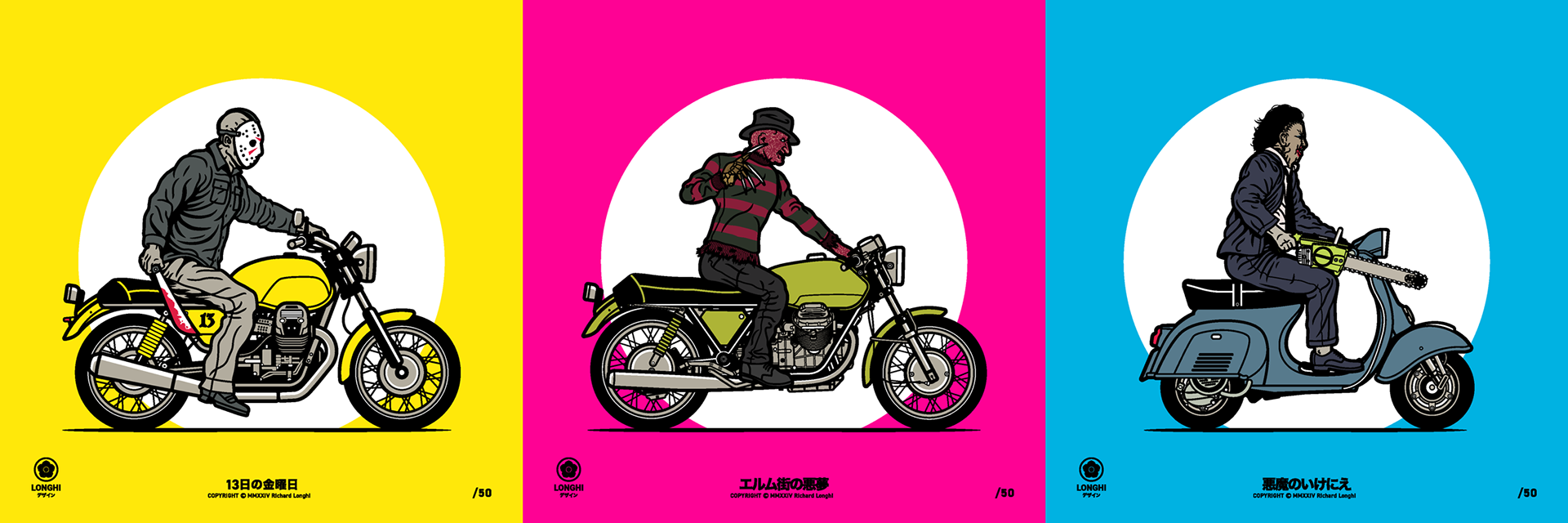 An Illustration series I created that combines vintage Italian motorbikes and some of my favorite slashers from the 80's. I have made t-shirts and stickers, and I hope to create posters soon.